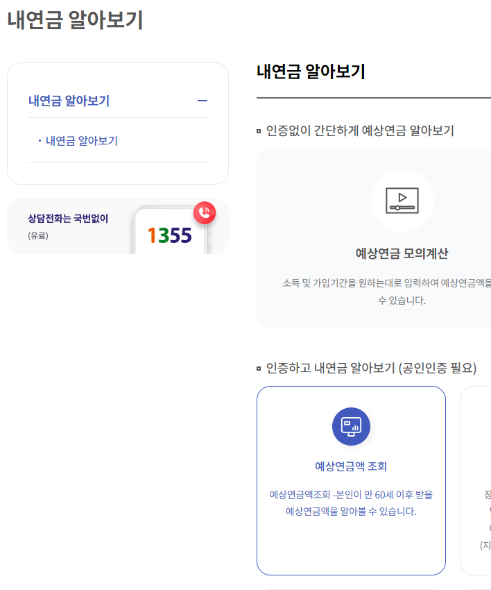 예상연금액 조회를 누르신 후 본인 인증 절차를 거치시면 나의 국민연금 예상 수령액을 바로 확인하실 수 있습니다.