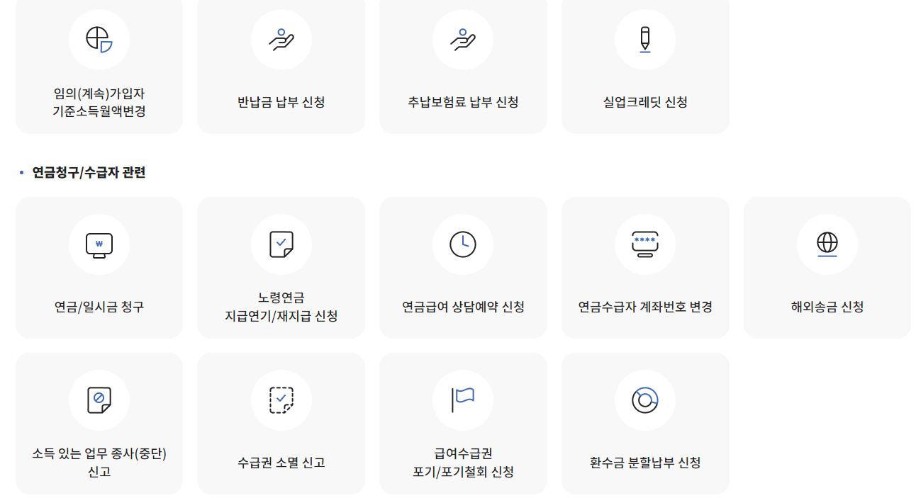 그 후 스크롤을 쭉 내려 연금/일시금 청구로 들어가셔서 신청하시면 됩니다.