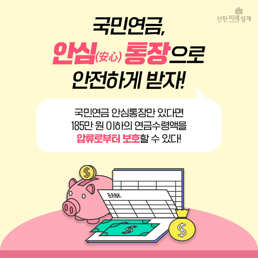 만약에 법원의 압류 명령 등으로부터 최소한의 생활비 보장이 필요한 경우에는 국민연금 안심통장 개설이 가능하다고 하니 참고하시기 바랍니다.