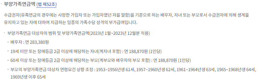 이때 부양가족연금액은 지급되지 않습니다.