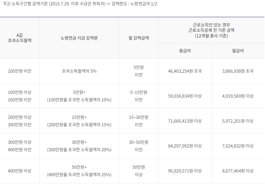 소득 수준에 따른 감액 기준은 다음과 같습니다.