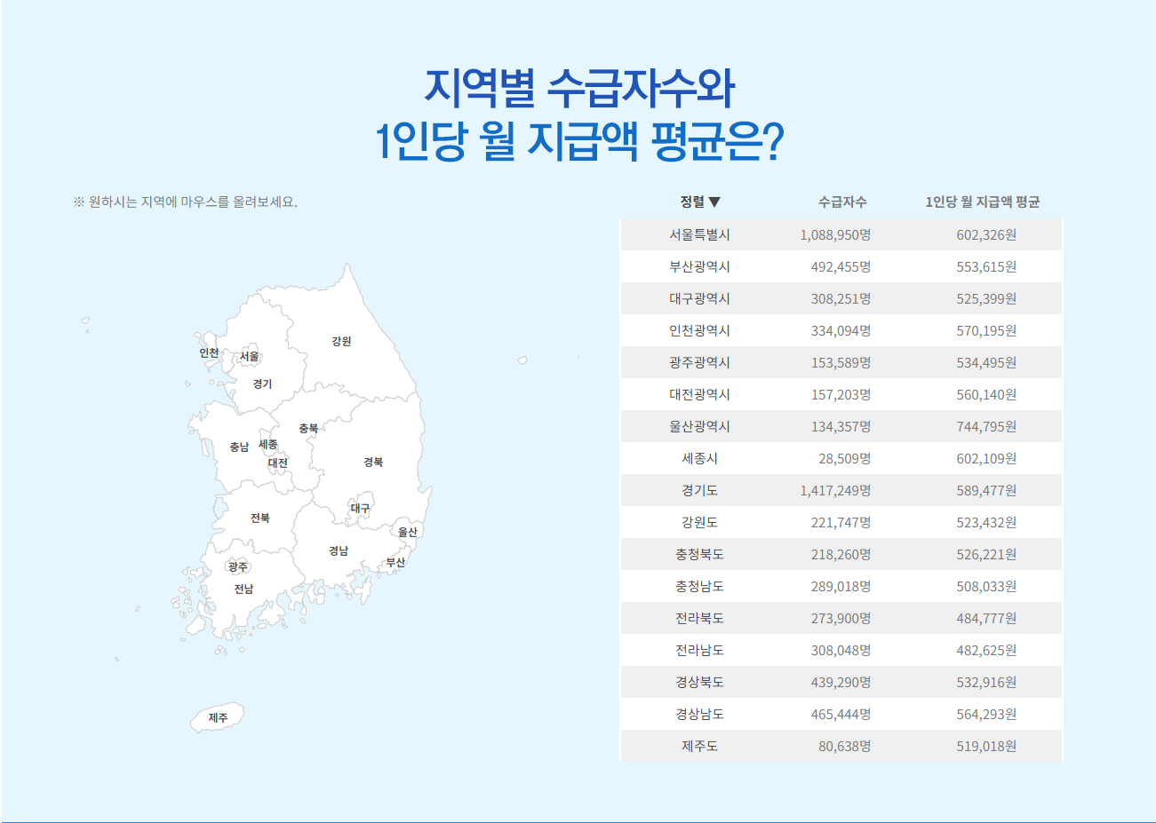 그리고 전국 지역별 수급자수와 1인당 월평균 국민연금 지급액도 알아보시기 바랍니다.