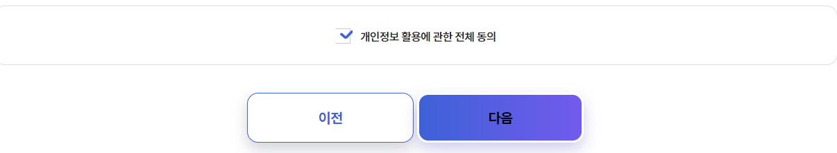 개인정보 활용 동의 후 다음을 누릅니다.