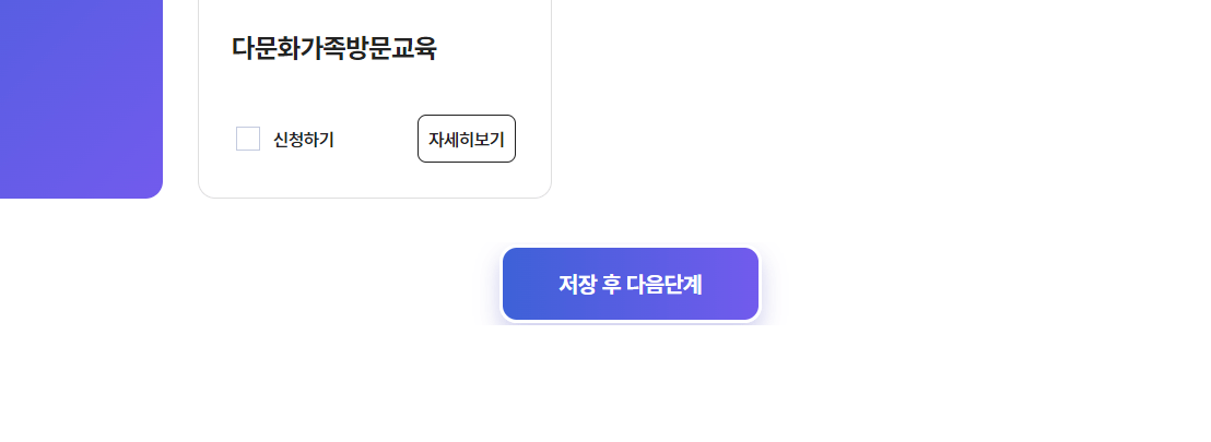 신청하기를 클릭하고 맨 밑으로 내려가 저장 후 다음단계를 누릅니다.