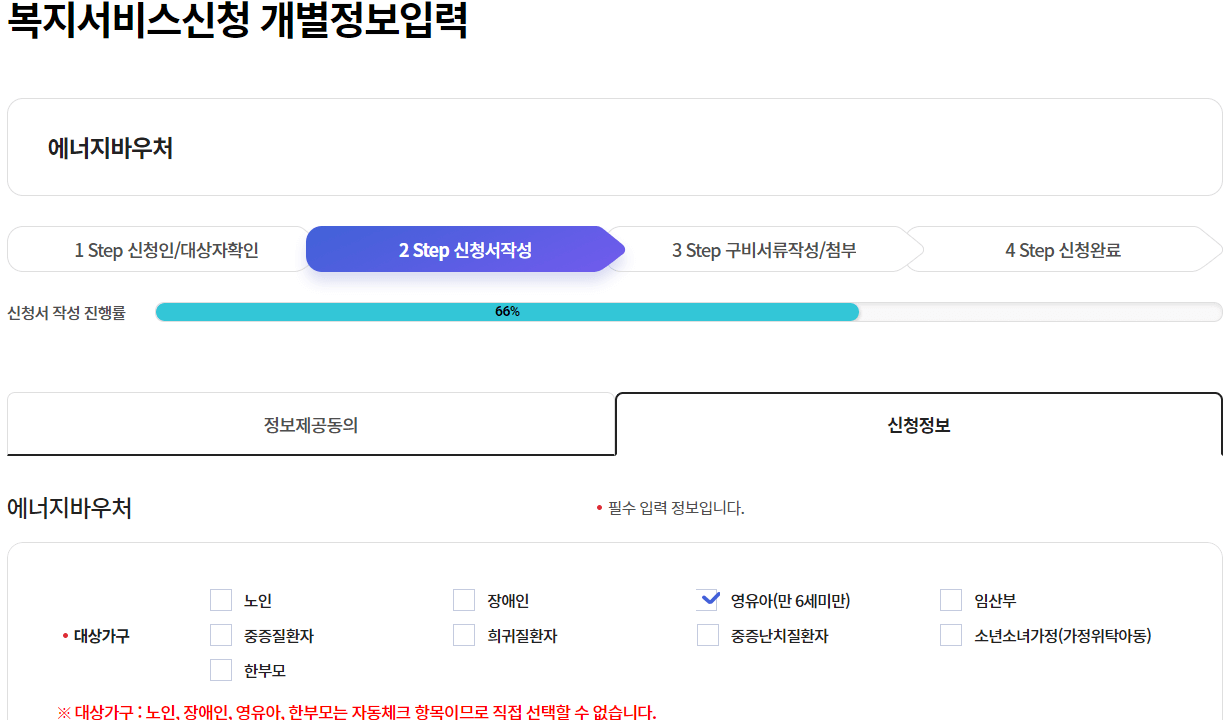 신청인 및 가족정보를 모두 입력해 줍니다.