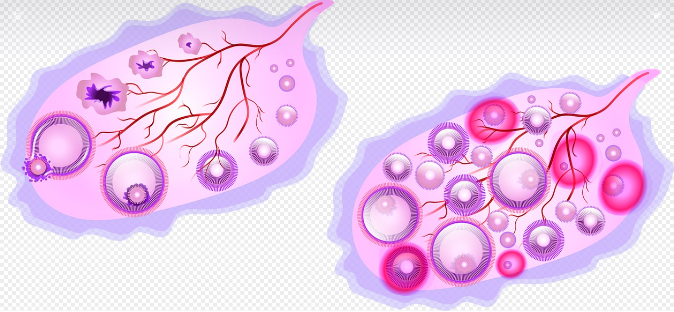 셋째, 수많은 작은 낭종을 포함하는 확대된 난소를 가지고 있습니다. 이 낭종은 배란 중에 발달하지 않았거나 배출되지 않은 여포입니다.