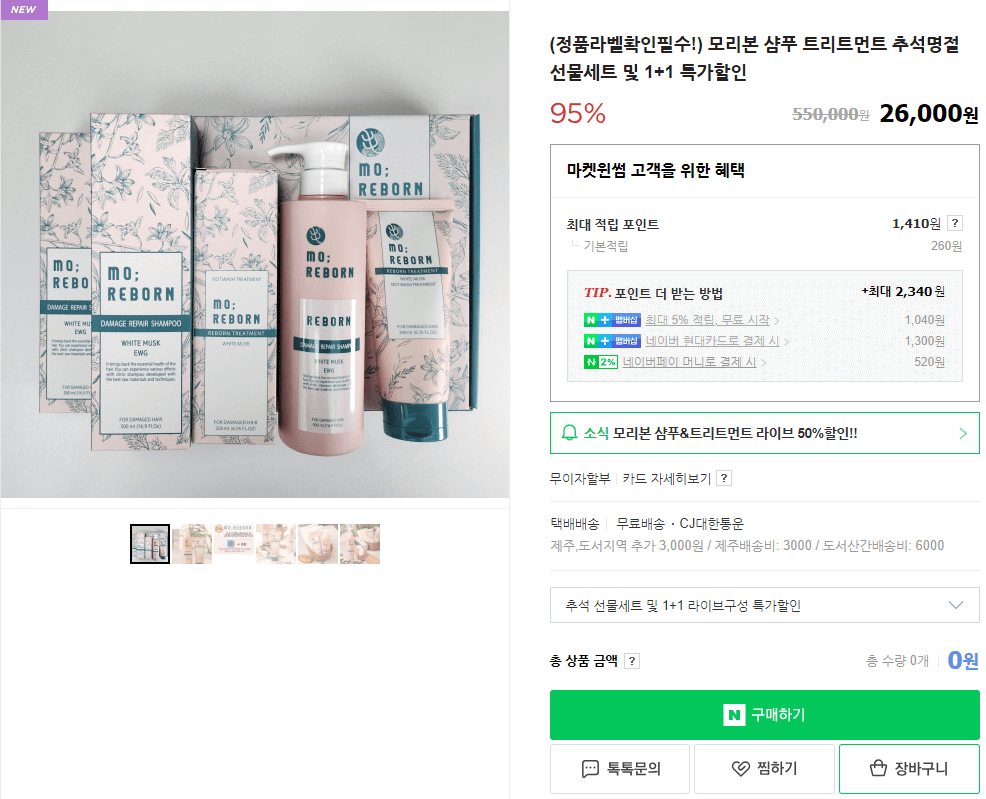 참고로 멘톨 성분 들어있는 시원한 모리본 샴푸도 1+1 행사 중입니다.