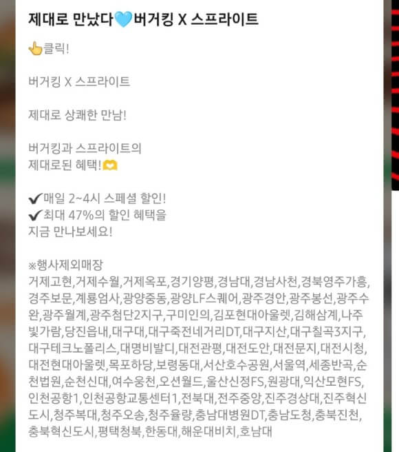 버거킹과 스프라이트가 제대로 만나 제대로 맛난 혜택을 제공한다고 합니다.