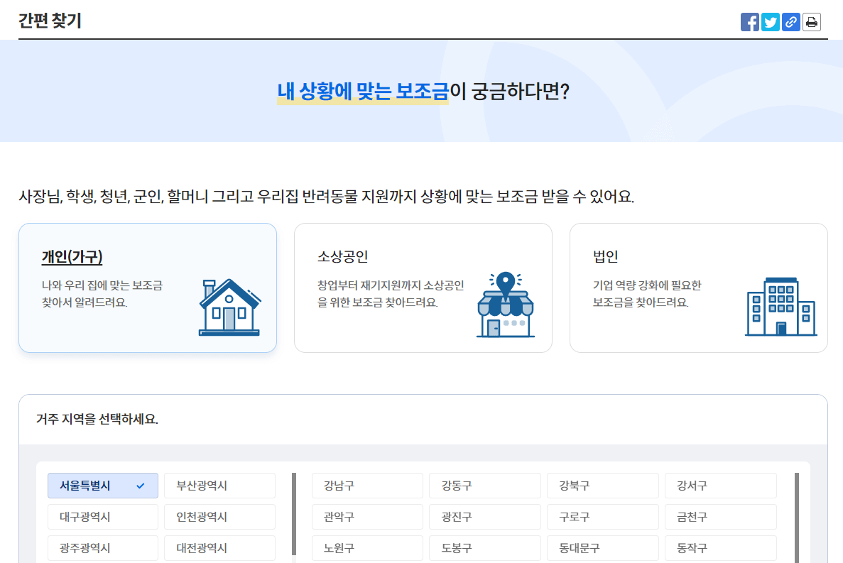 그러면 여러분께 적합한 지원형태나 신청 방법을 선택하셔서 나에게 꼭 맞는 정부지원금을 알아보시면 됩니다.