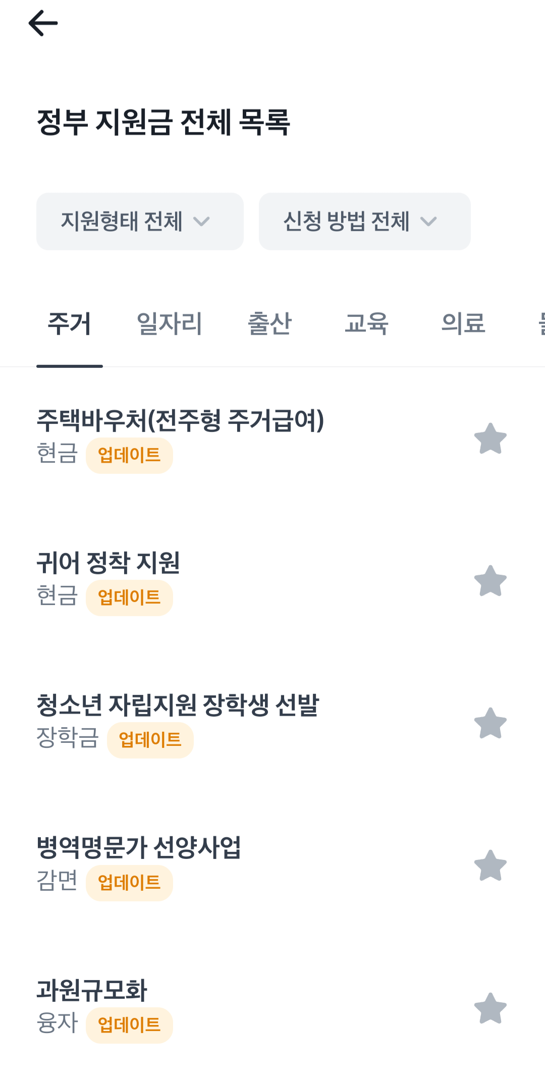 숨은 정부지원금 찾기를 누르시면 정부지원금 전체 목록이 나옵니다.
