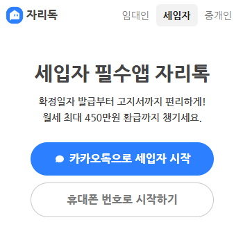 세입자로 선택하고 카카오톡으로 세입자 시작을 누릅니다.