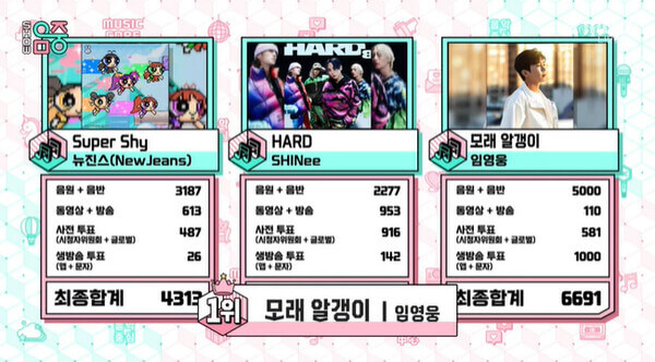 게다가 지난 15일에 방송된 MBC '쇼! 음악중심'에서는 직접 출연하지 않았음에도 불구하고 뉴진스와 샤이니를 제치고 1위를 차지했습니다.