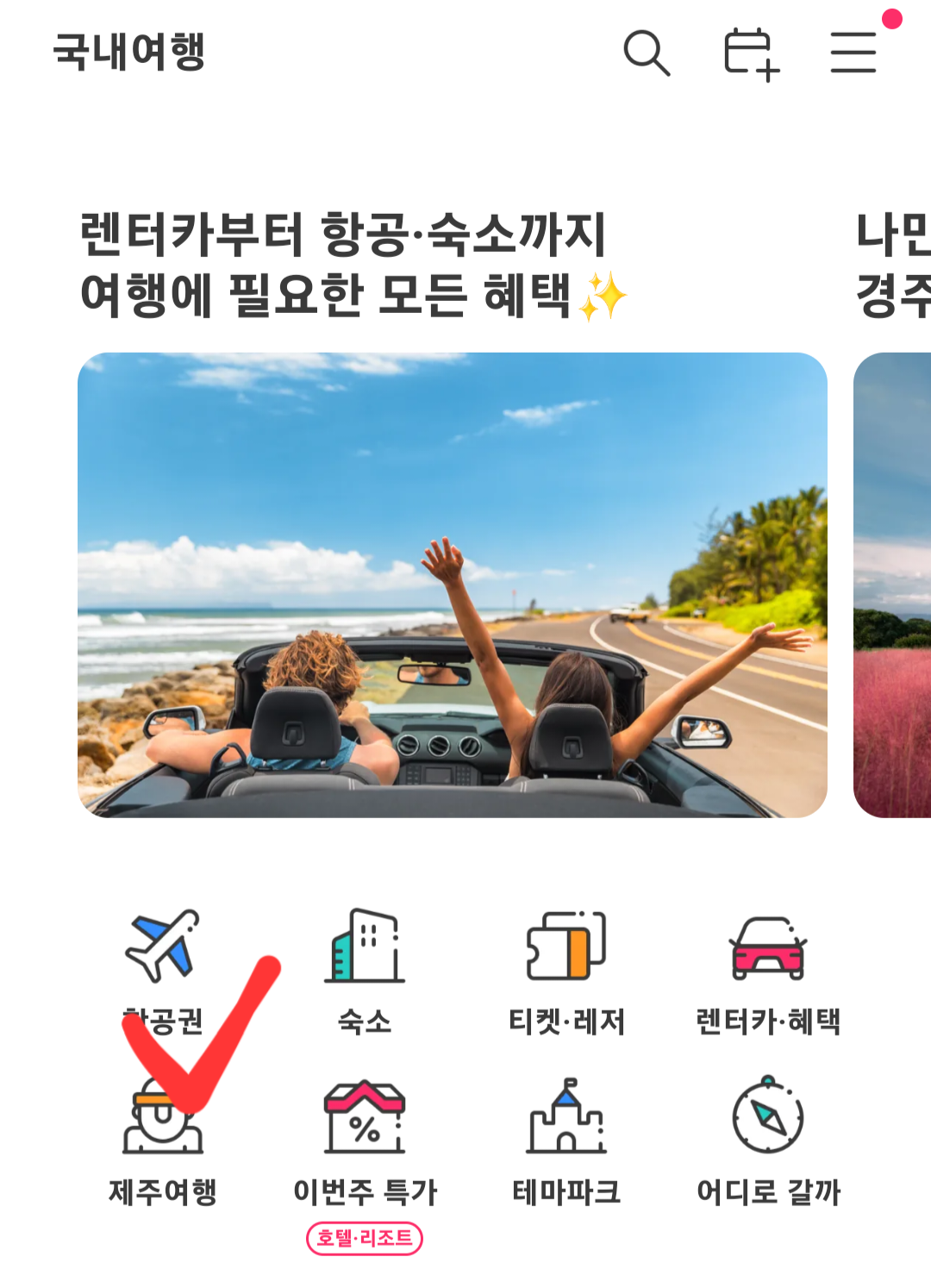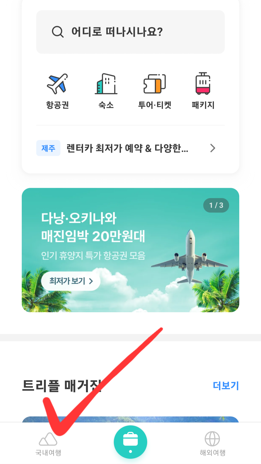1. 우선 트리플 앱으로 들어가 국내여행을 선택합니다.