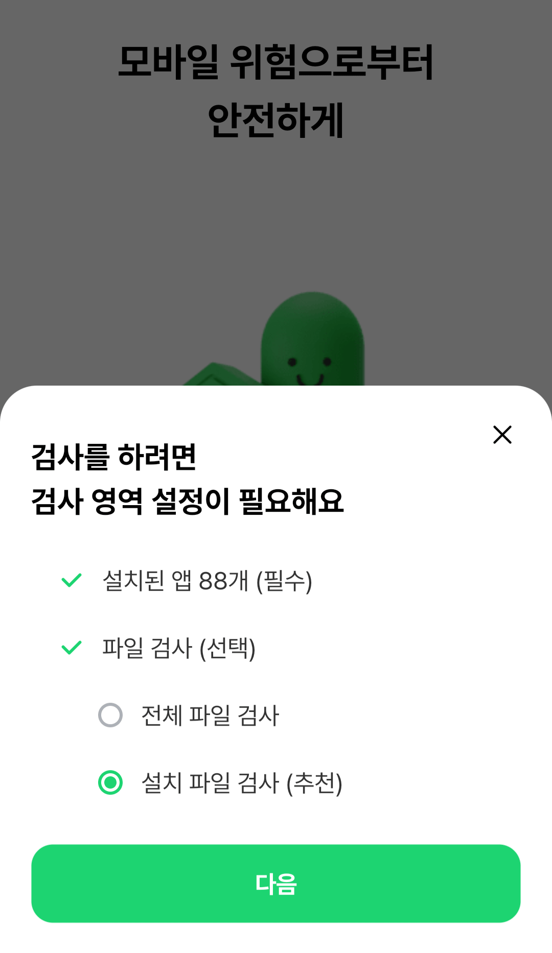 5. 전체 파일 검사나 설치 파일 검사 중 원하시는 것을 선택하여 검사를 진행합니다.