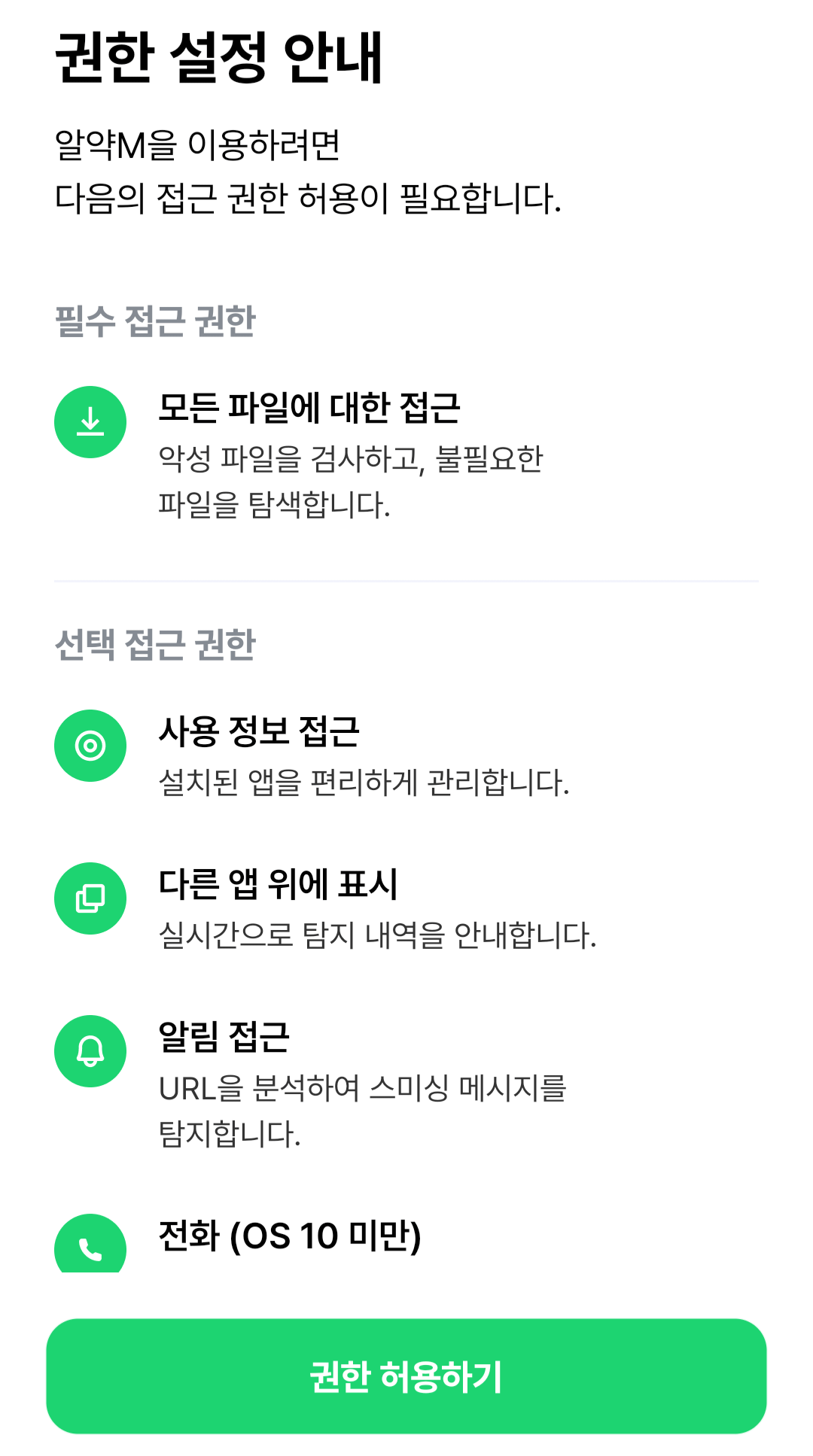 3. 알약m의 파일접근과 알림을 허용해 줍니다.