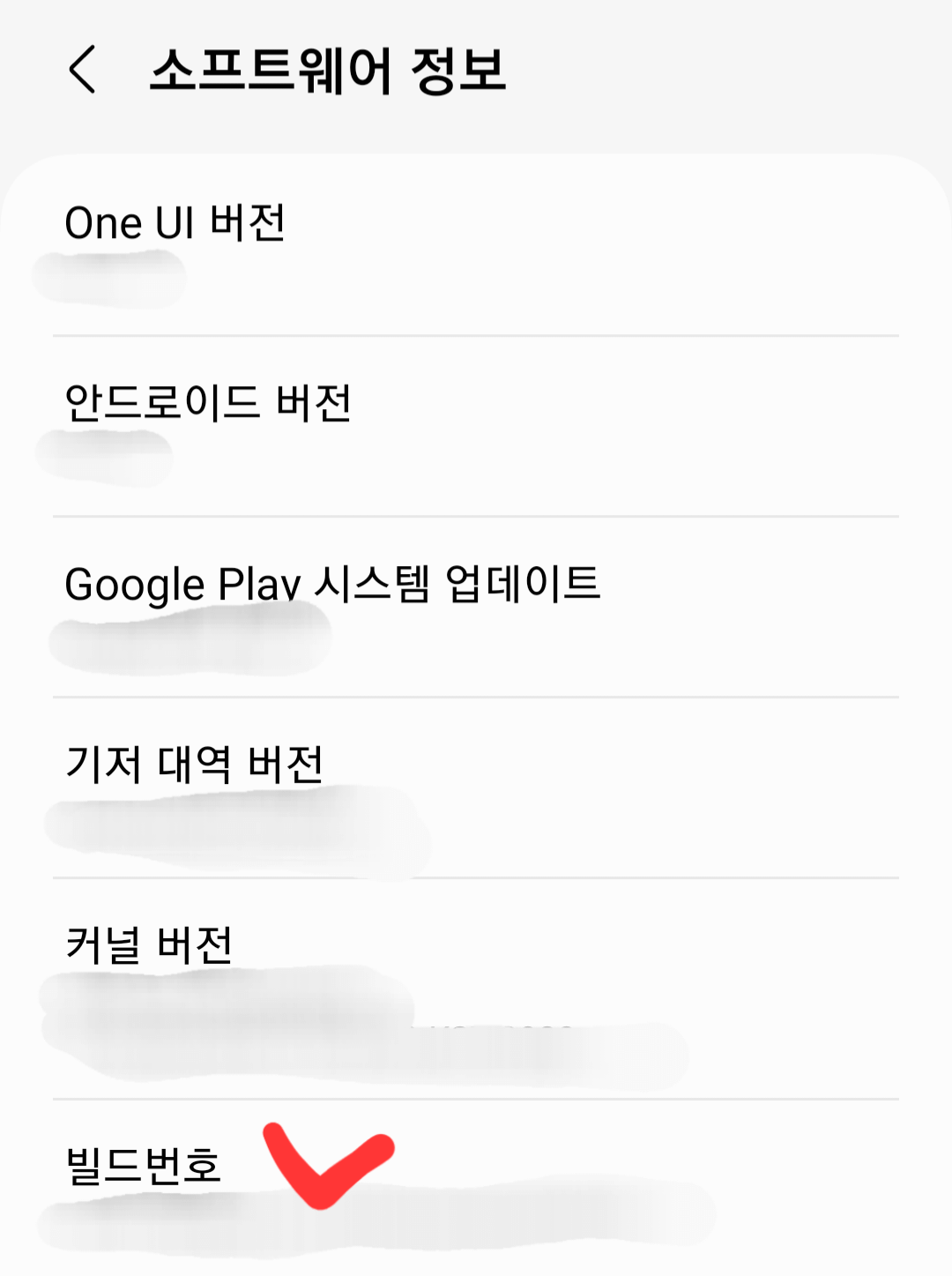 3. 빌드번호를 빠르게 여러 번 터치합니다.